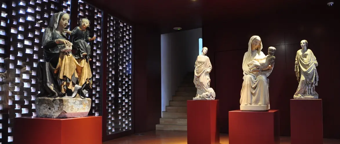 Exhibition comprises six eminent medieval statues. Dating from sometime before 1200, the Romanesque, if not pre-Romanesque, sculpture of a bearded man is one of the oldest preserved medieval statues in Slovenia. The Gothic statue of a seated Madonna with Child (cca. 1360-70) certainly ranks among the country’s most eminent pieces from the third quarter of the 14th century. The beautiful Gothic style wooden sculpture of God the Father, once part of a Throne of Grace, dates from around 1380. The highlight of the exhibition is a group of three sculptures, the work of a Ptujska Gora workshop between 1400 and 1405: the statue of the seated Madonna with Child and statues of Sts. Margaret and Dorothea.